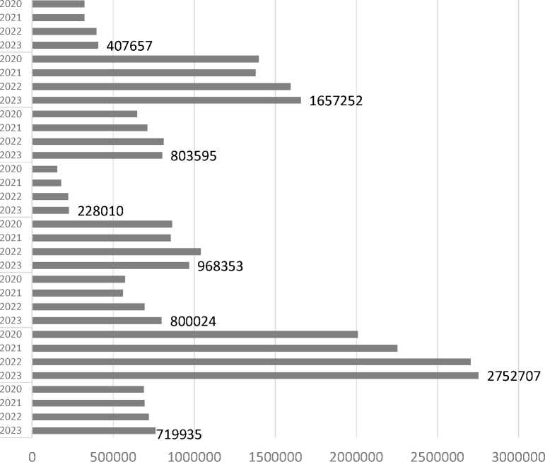 ■ 2020 ■ 2021 ■ 2022 ■ 2023