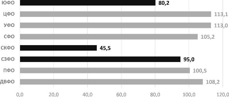 Fig. 22. Indices of development of the DPO system of federal districts, calculated based on 2023 data, %