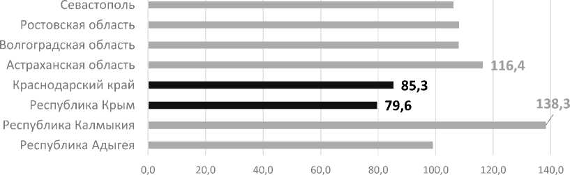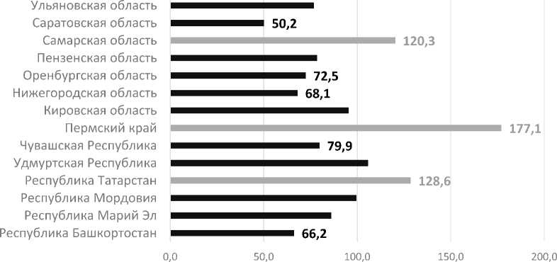 значительно превышает долю этого региона в ВРП округа: это Хабаровский край в Дальневосточном федеральном округе, Пермский край и Самарская область в Приволжском федеральном округе, Астраханская область, Республика Крым и Ростовская область в Южном федеральном округе. Можно предположить, что именно эти субъекты Федерации имеют более развитые системы