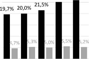 Видно, что периодичность обучения по программам повышения квалификации в целом по всем занятым пока в 4–5 раз больше, чем в среднем по странам ОЭСР [12]. По программам профпереподготовки динамика изменения периодичности обучения существенно лучше, чем динамика изменения периодичности обучения