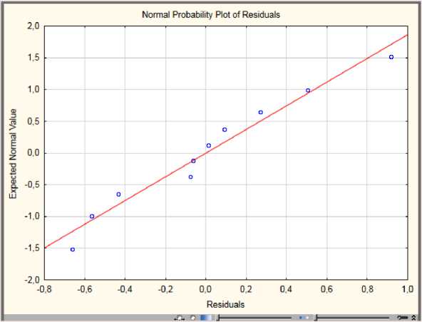 Рис. 14. Глазомерный метод проверки на нормальность ошибок модели