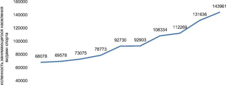Результаты исследования . Анализ ретроспективной динамики численности населения, систематически занимающегося видами спорта в Камчатском крае, выполнен на основе данных федерального статистического наблюдения по форме № 1-ФК «Сведения о физической культуре и спорте», раздел 5 «Развитие видов спорта». Указанный раздел формы аккумулирует сведения о численности занимающихся по видам спорта и группам двигательной активности и является основным официальным источником для оценки структурных и количественных изменений в региональной системе физической культуры и спорта.