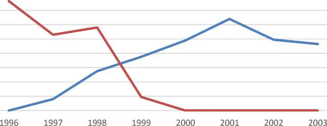 Диаграмма 1. Осуждение к лишению свободы пожизненно и смертной казни (1996–2003)6