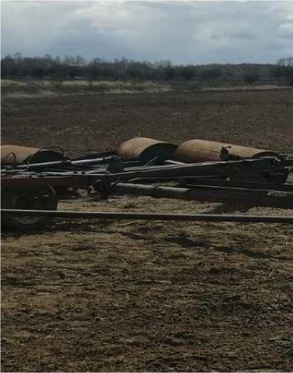 При проведении проверки в реальных условиях эксплуатации объектом исследования был взят прикатывающий машинно-тракторный агрегат, состоящий из колёсного трактора класса 1,4 и трёхзвенного водоналивного гладкого катка 3КВГ, на котором был установлен автоматический корректор нагрузки на рабочий орган прикатывающего агрегата (рис. 2). Корректирование силового воздействия на каток обеспечивалось за счёт снижения силового воздействия на опорные поверхности силового агрегата.
