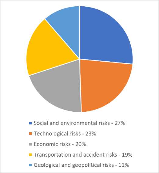 The analysis shows that the predominant group of risks is focused on the socio-environmental and technical aspects of offshore oil and gas field development. The frequency of risk mentions by category is shown in Figure 1.