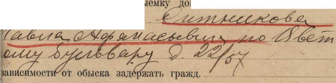 Павел Афанасьевич Ситников жил в Москве по адресу: Цветной бульвар, 22, кв. 57.