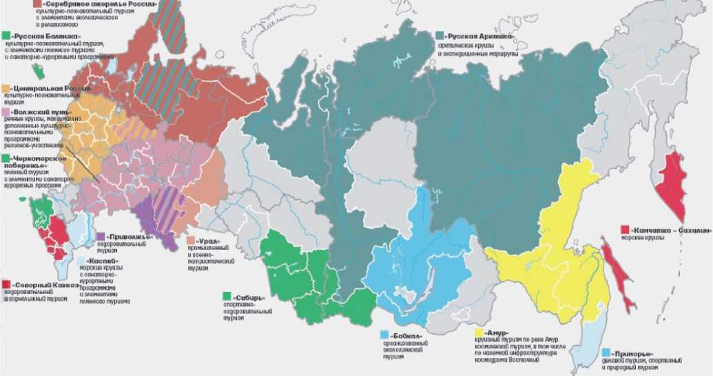 Рис. 2. Пространственная локация туристских макротерриторий в Российской Федерации