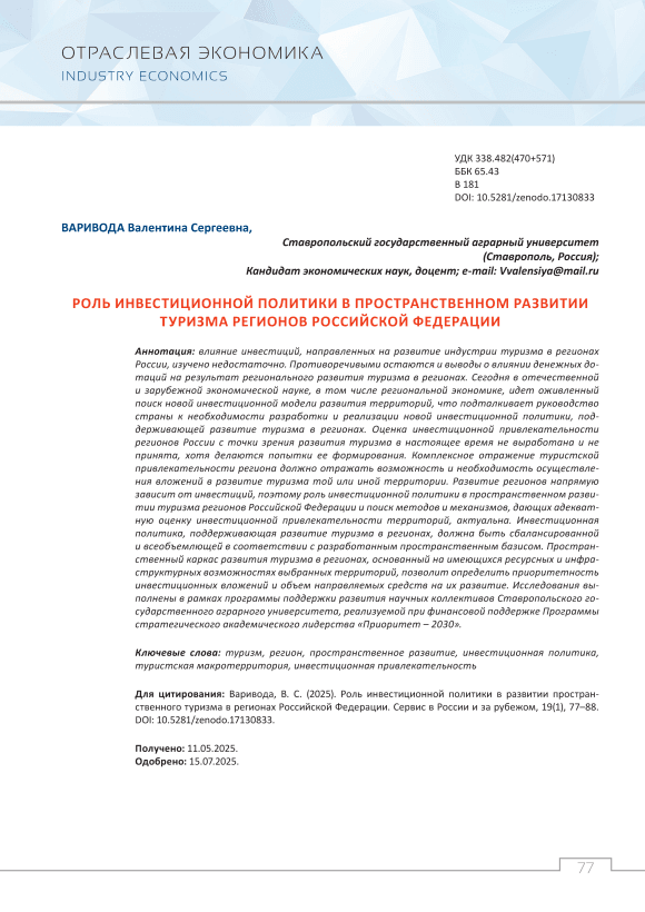 IDR: 140313733 | УДК: 338.482(470+571) | DOI: 10.5281/zenodo.17130833