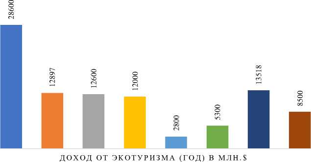 Рис. 2. Годовые доходы стран от экотуризма, млн долл. США (по данным Intesco Research Group)