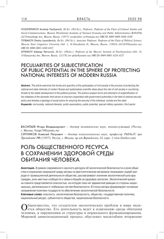 Опасность, экологическая безопасность, общество, государственная политика, национальный ресурс, субъектность общества, национальная безопасность