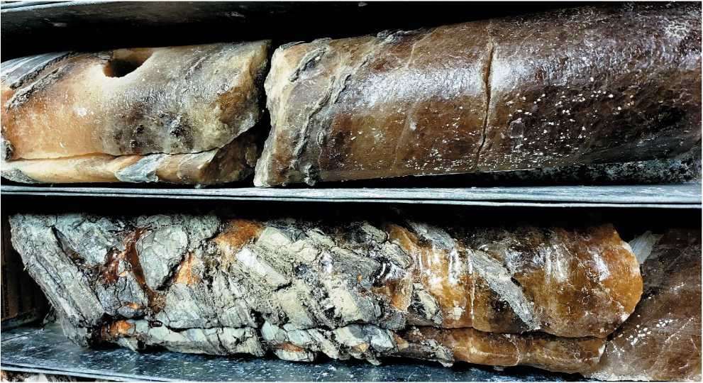 Fig. 7 Photo of core samples of contorted salt with inclusions of brecciated carbonate rocks. 2-Adak well,