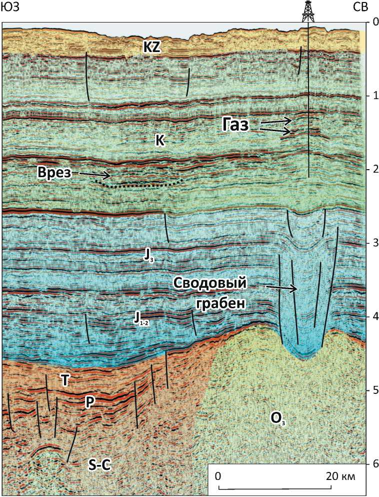 Таким образом, интерпретация региональных сейсмических данных совместно с дополнительными геолого-геофизическими данными показывает,