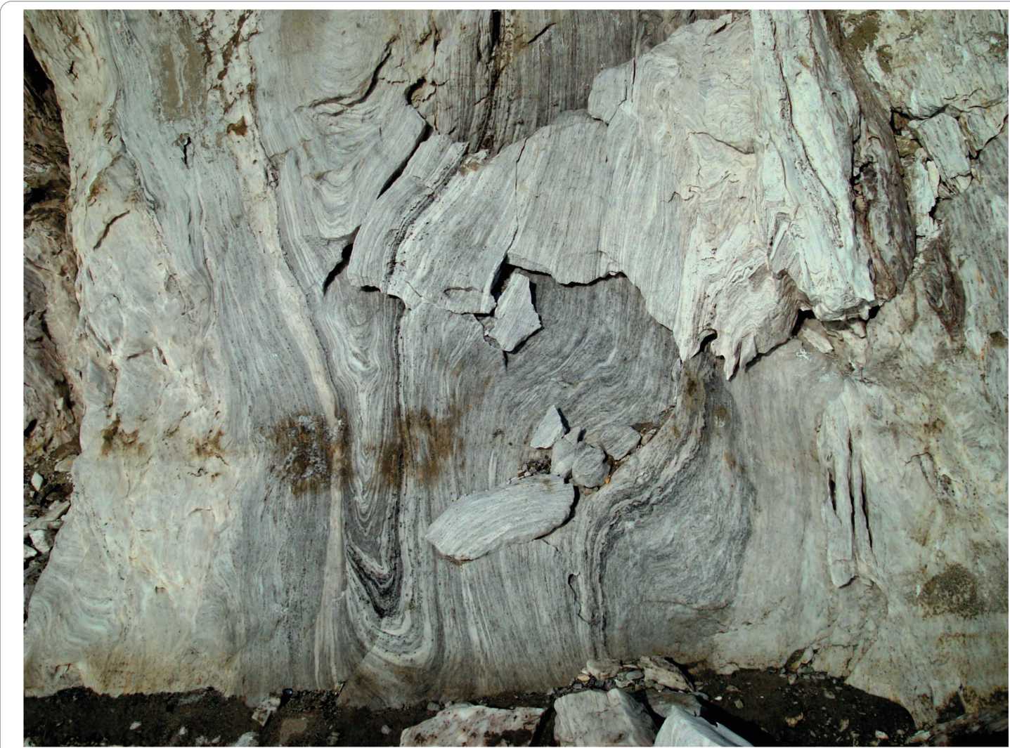 Рис. 2. Обнажение дислоцированых эвапоритов на берегу р. Тарея, Горный Таймыр (фото А.П. Романова)