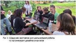 Второй выезд включает в себя фотофиксацию локаций и точек притяжения, создание скетчей для дальнейшей работы по организации дизайна аншлагов ( Рис. 3 ). Для визуализации маршрута вместе с волонтерами члены команды проекта обсуждали и подбирали шрифт для табличных обозначений. В основу данной работы легли такие критерии, как читаемость, стиль и сочетаемость с графическими элементами цвета. Волонтеры обучались использованию графических элементов в дизайне, в