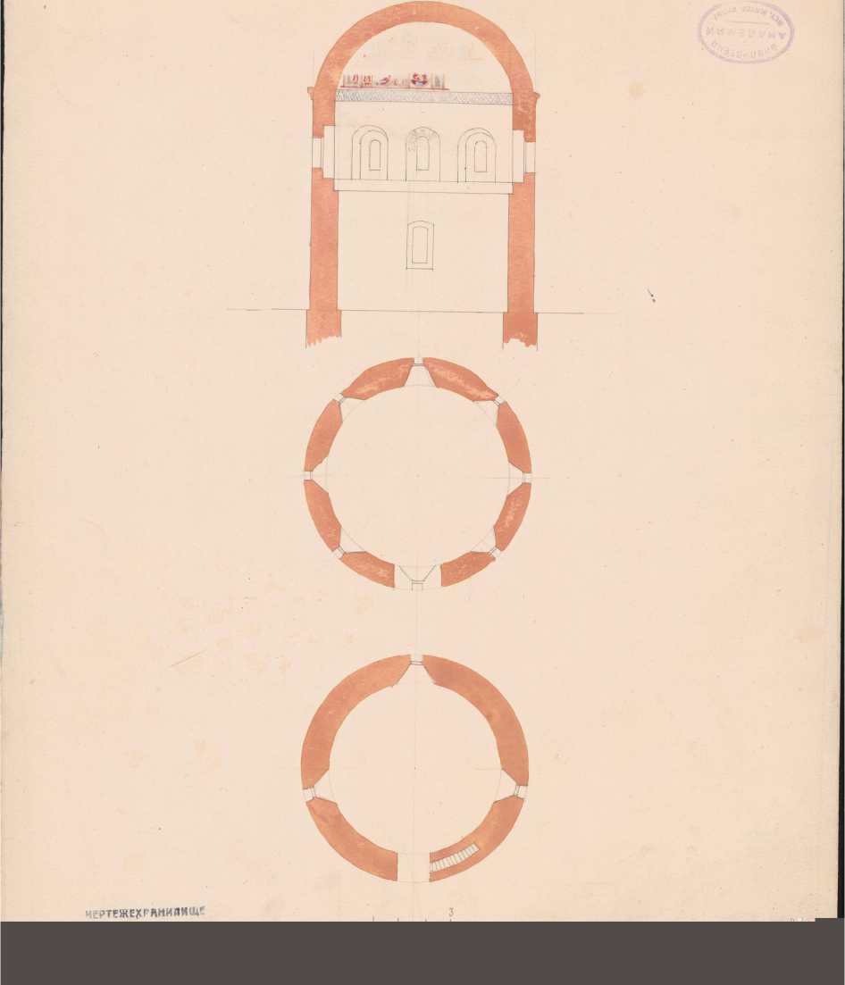 Рис. 8. Планы и разрез Сюйреньской башни по Д.М. Струкову