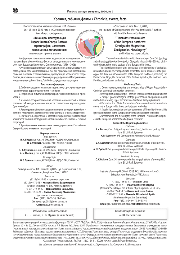 Российская конференция «Тиманиды-протоуралиды Европейского Северо-Востока: cтратиграфия, магматизм, геодинамика, металлогения» (анонс)