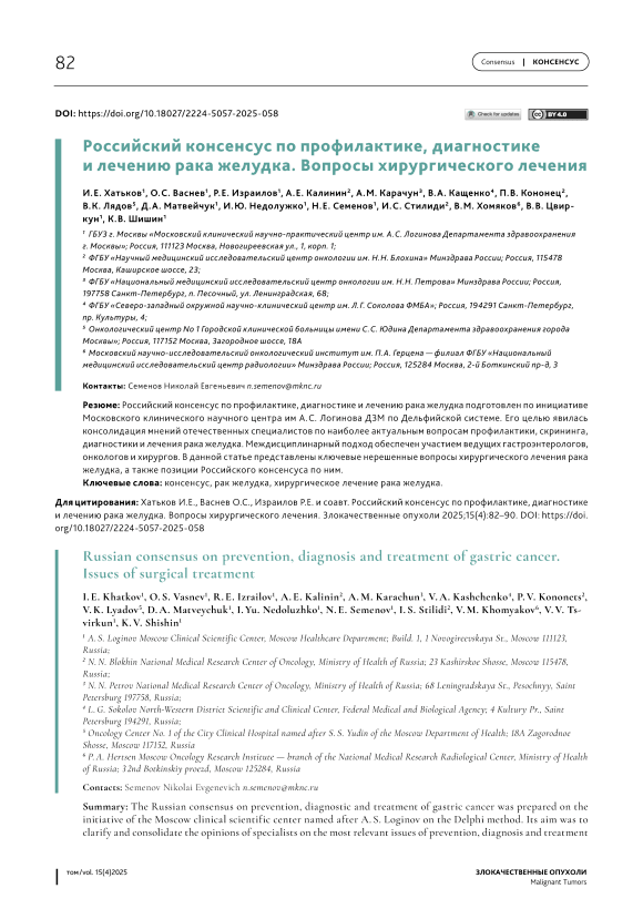 Российский консенсус по профилактике, диагностике и лечению рака желудка. Вопросы хирургического лечения