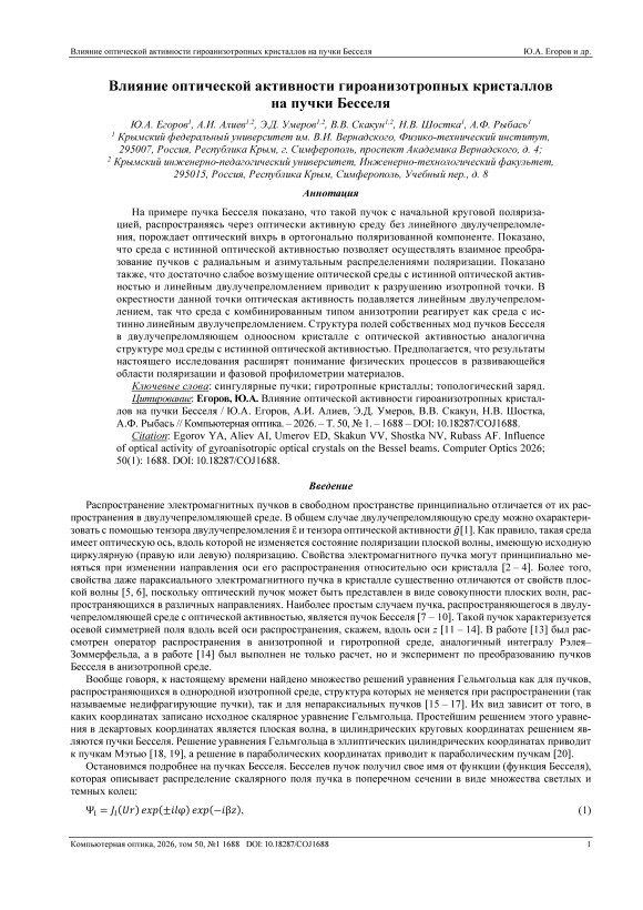 Рыбась Влияние оптической активности гироанизотропных кристаллов на пучки Бесселя