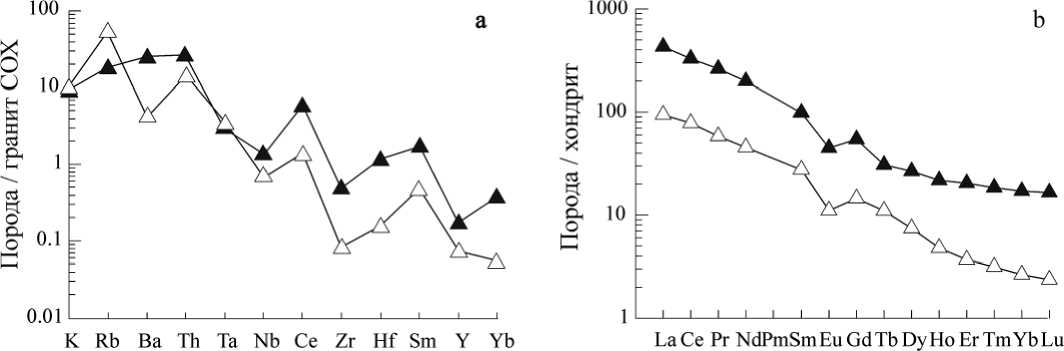 Граниты из обеих скважин относятся к перглиноземистым, индекс Шенда составляет в них 1.14–1.31 (рис. 3, d).