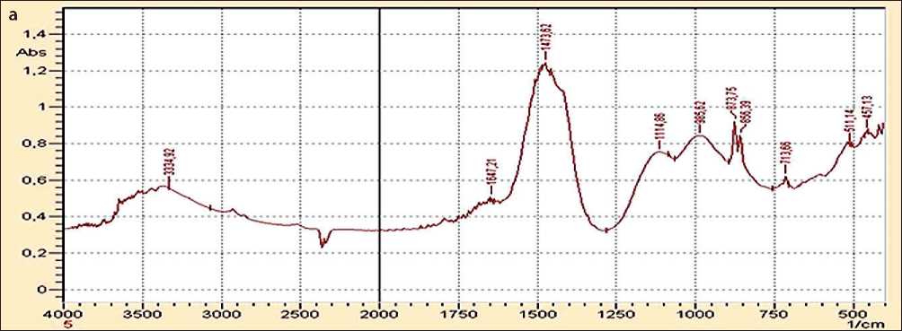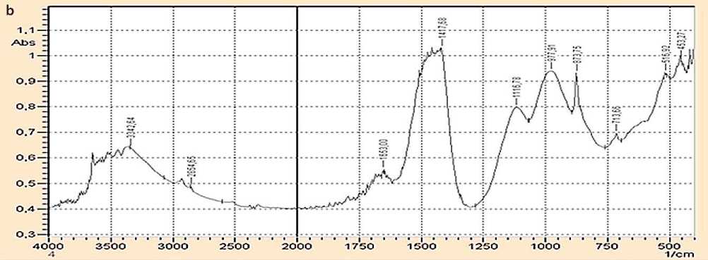 Рис. 2. ИК-спектры портландцемента с золой уноса без (а) и с ультрадисперсной добавкой (б)