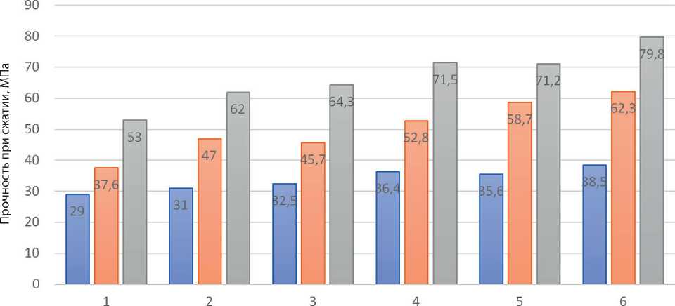 Рис. 5. Прочность при сжатии самоуплотняющихся бетонов
