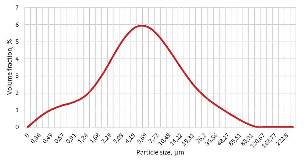 Fly ash, as a conditionally inert microfiller, has an average particle size of 4.19 µm (Fig. 4), with a dispersion