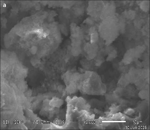 The introduction of an ultrafine, chemically active mineral additive into the cement composition not only ensures the physical filling of intergranular voids but also intensifies the formation of hydration products, which act as additional structural elements and bind both free intergranular water and water adsorbed on the surface of filler particles. This process results in a reduction in the overall porosity of the cement stone and a significant improvement in the microstructure of the contact zone between the binder and filler (Fig. 6, JEOL-JSM-6510LV, Progress Center for Collective Use, ESSUTM). This creates a highly dense structure, changes the nature of porosity, and improves the physical and mechanical properties of the modified concrete.