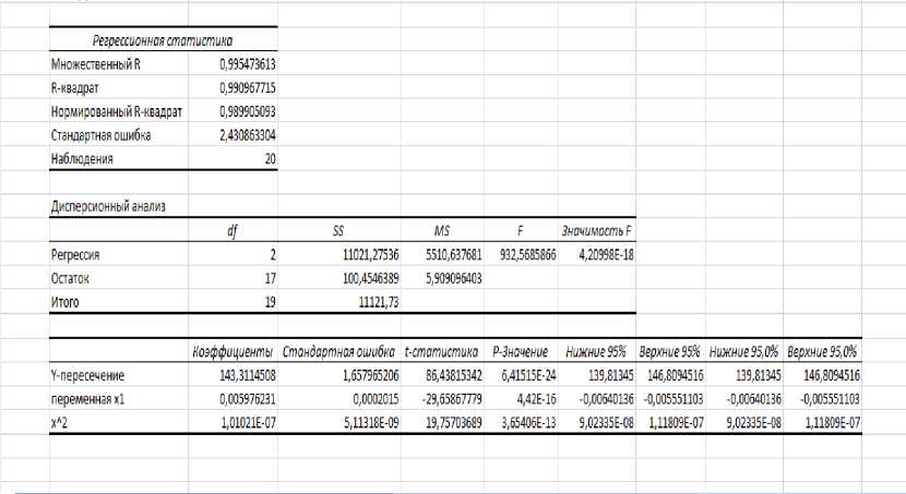 Для решения поставленной задачи был проведен множественный корреляционный анализ. В ходе, которого установлено, что значение коэффициентов парной корреляции указывают на тесную связь трудоспособного населения как с числом школ (R=0,84), так и с числом детских садов (R= 0,83). В то же время межфакторная связь (0,53) умеренная и не превышает тесноту связи каждого фактора с признаком (численность трудоспособного населения), поэтому из построенной модели исключать какой-либо фактор нецелесообразно. По значениям частных коэффициентов эластичности можно сделать вывод о более сильном влиянии на количество трудоспособного населения фактора числа детских садов , чем числа школ 20% против 14%.
