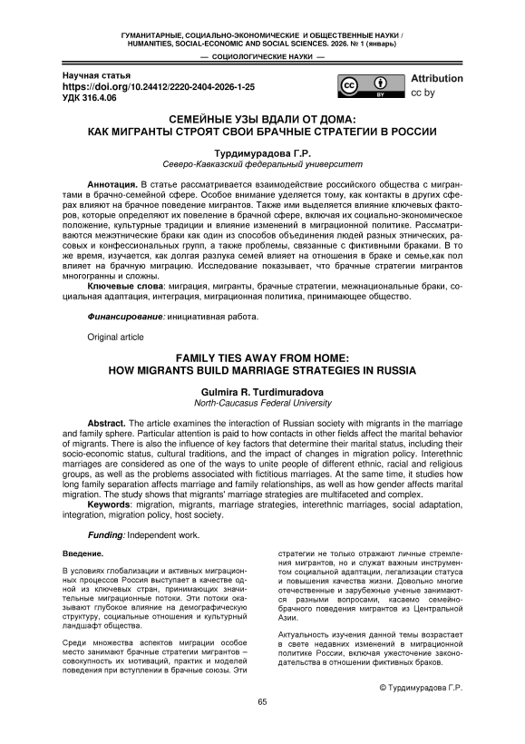 Миграция, мигранты, брачные стратегии, межнациональные браки, социальная адаптация, интеграция, миграционная политика, принимающее общество