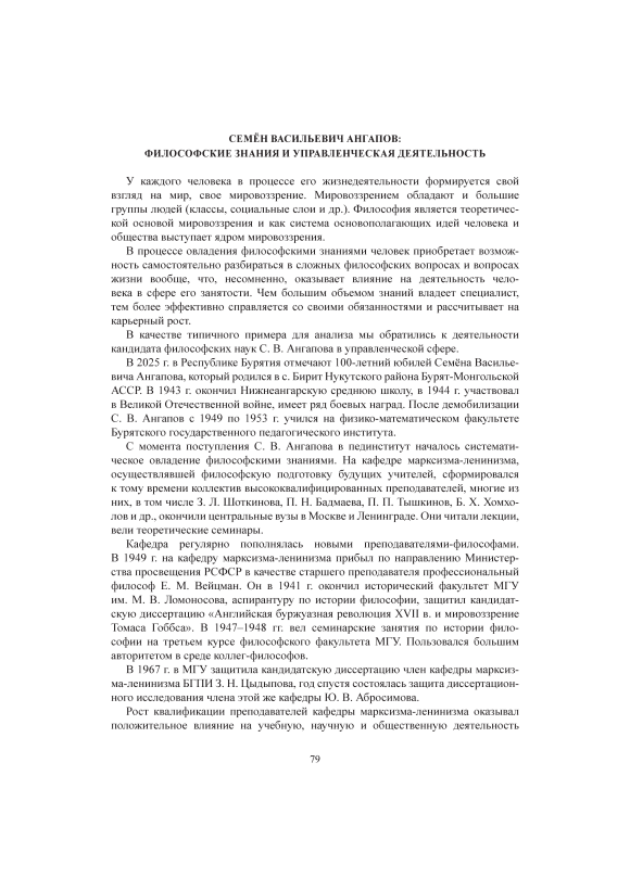 Семён Васильевич Ангапов: философские знания и управленческая деятельность
