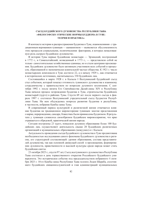 Съезд буддийского духовенства Республики Тыва «Философско-этические нормы буддизма в Туве: теория и практика»