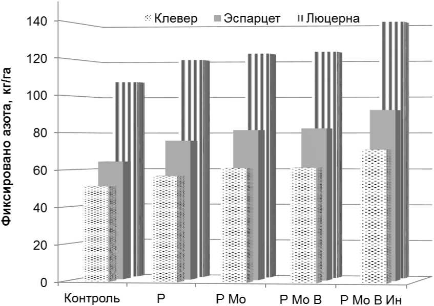 Клевер, люцерна, эспарцет, макро- и микроэлементы, симбиотическая азотфиксация, доля участия в питании