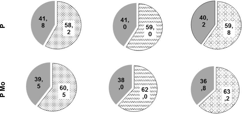 Для обеспечения оптимальных условий азотфиксации в почве поддерживалось содержание подвижного фосфора не менее 40 мг/кг, молибдена – 0,4 мг/кг, бора – 0,5 мг/кг [11]. Коррекция фосфорного питания осуществлялась внесением простого гранулированного суперфосфата (90 кг Р 2 О 5 /га). Молибден применяли в форме молибденовокислого аммония, а бор -в форме борной кислоты. Микроэлементы применялись в виде предпосевной обработки семян и опрыскивания почвы перед посевом.