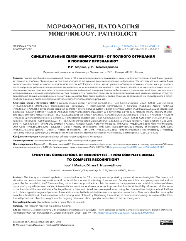 Синцитиальные связи нейроцитов – от полного отрицания к полному признанию?