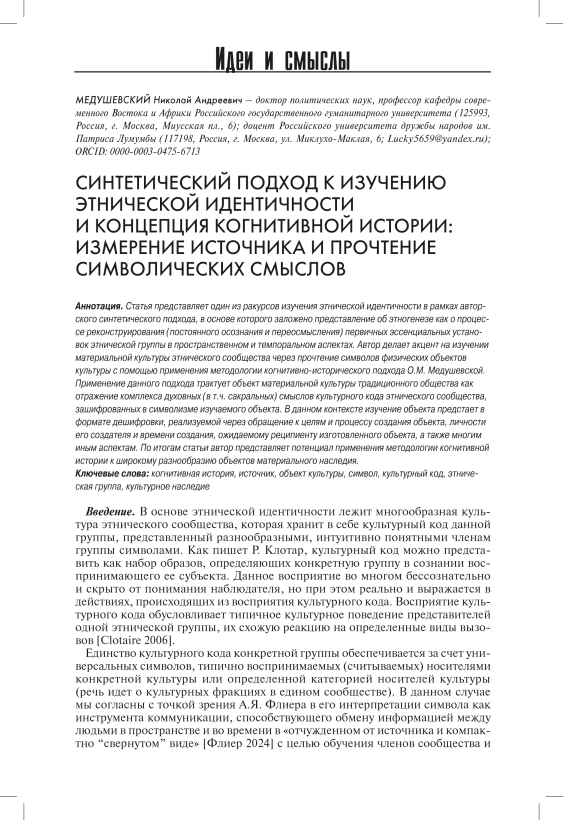 Синтетический подход к изучению этнической идентичности и концепция когнитивной истории: измерение источника и прочтение символических смыслов