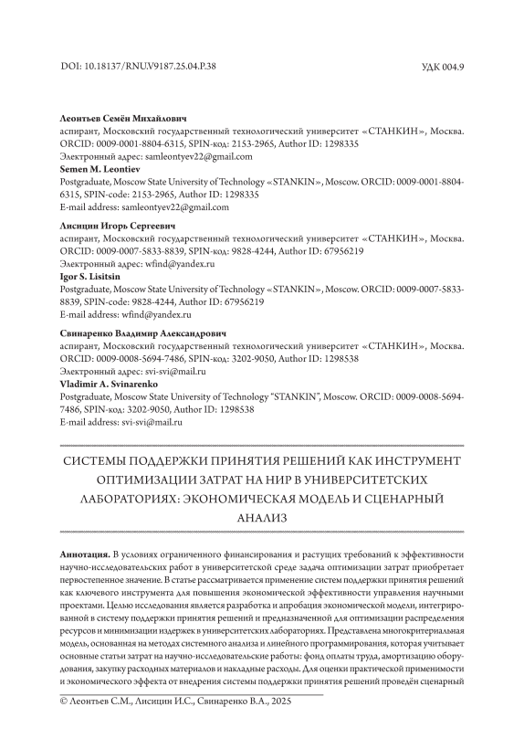 Системы поддержки принятия решений как инструмент оптимизации затрат на НИР в университетских лабораториях: экономическая модель и сценарный анализ