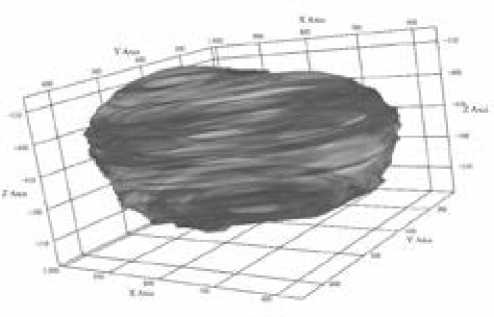 Моделирование и визуализация объектов неправильной геометрической формы на основе данных компьютерной томографии, а также измерение их площади и объема осуществляется на основе стандартных геометрических формул с использованием программы для ЭВМ «Интерактивный графический универсальный программный комплекс измерения анатомических структур» [10].