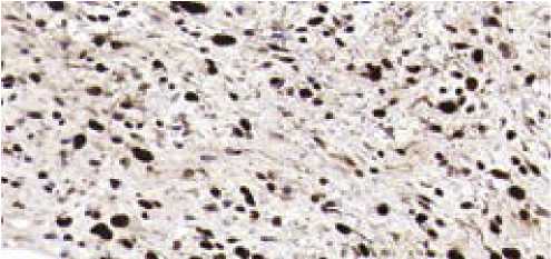 Figure 8. Immunohistochemical study of the tumor with an antibody to MDM2, * 1000