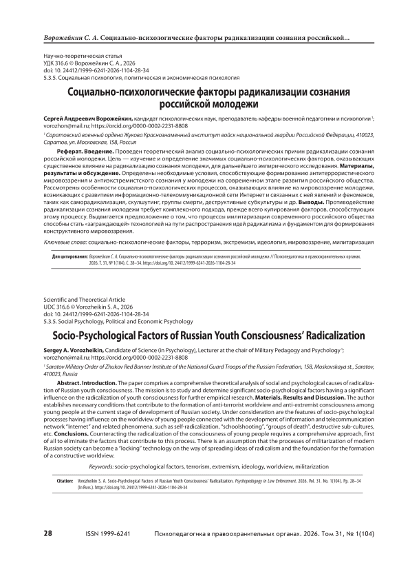 IDR: 149150562 | УДК: 316.6 | DOI: 10.24412/1999-6241-2026-1104-28-34