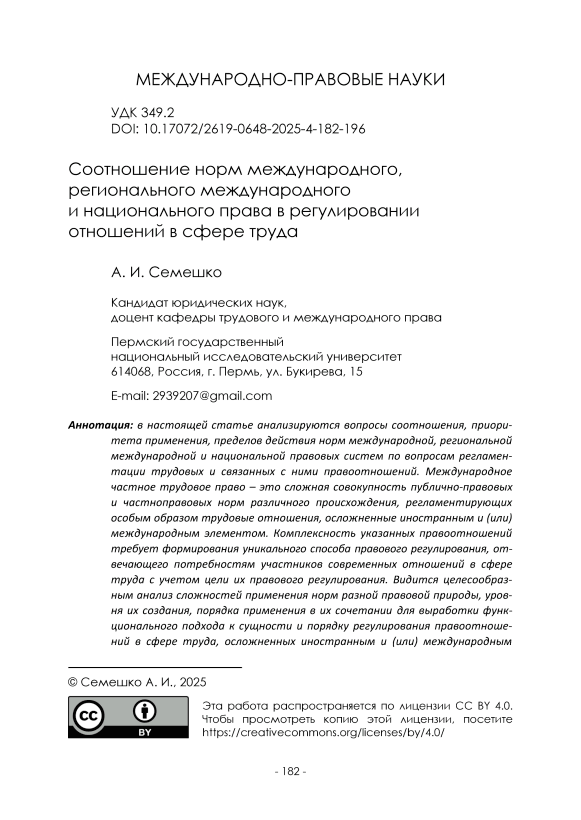 Текст научной статьи Соотношение норм международного, регионального международного и национального права в регулировании отношений в сфере труда