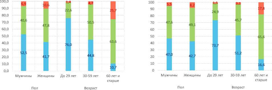 его состояния с возрастом, хронизацией имеющихся заболеваний, особенно среди населения 60 лет и старше (Козырева, Смирнов, 2020). Наблюдаемые гендерные различия исследователи также объясняют гетерогенностью в самооценках здоровья мужчин и женщин, в качестве детерминант которой выступают социально-экономические характеристики: статусы «разведен» и «холост» для мужчин, статусы «разведена», «не замужем» и «вдова» для женщин, доход, наличие неполного среднего образования, проживание за пределами города и в отдельных регионах. Среди женщин с возрастом увеличивается разница между состоянием здоровья и его самооценкой (Канева, Байдин, 2018).