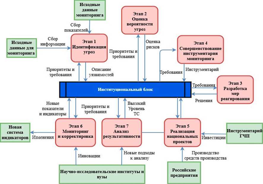Недостаточная согласованность инструментов мониторинга и реагирования на угрозы технологическому суверенитету формирует системные риски для экономической безопасности макроэкономической системы, поскольку приводит к позднему выявлению уязвимостей и снижает эффективность мер по обеспечению технологического развития национальной экономики. Целью исследования является обоснование необходимости совершенствования инструментария обеспечения технологического суверенитета на основе оценки угроз технологическому развитию национальной экономики. Материалы и методы исследования включают системный и институциональные подходы, структурно-логический анализ и моделирование процессов институционального развития экономики. В рамках исследования применяется системный анализ механизма обеспечения технологического суверенитета с включением в него вероятностного подхода к оценке угроз, основанного на причинно-следственных связях между факторами, влияющими на технологический суверенитет. В результате исследования предложен многоэтапный механизм обеспечения технологического суверенитета, включающий идентификацию угроз, оценку их вероятности, разработку мер реагирования, совершенствование инструментария мониторинга, реализацию национальных проектов, корректировку показателей и индикаторов, а также анализ результативности. Установлено, что включение в механизм прогнозно-аналитического блока на основе байесовского моделирования позволяет повысить своевременное выявление как реализованных, так и потенциальных технологических угроз.