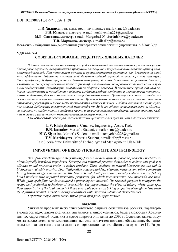 IDR: 142247365 | УДК: 664.664 | DOI: 10.53980/24131997_2026_1_28