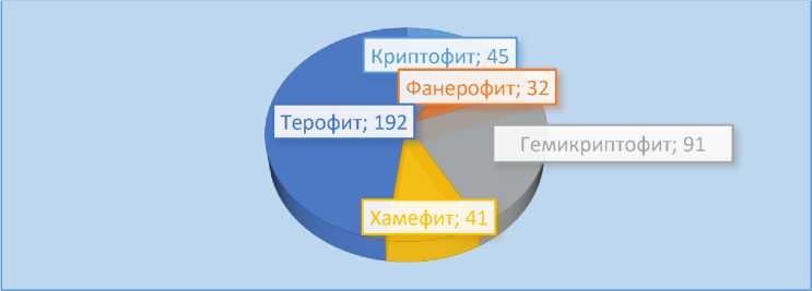 Доля споровых сосудистых растений в МБ очень мала (0,3%).