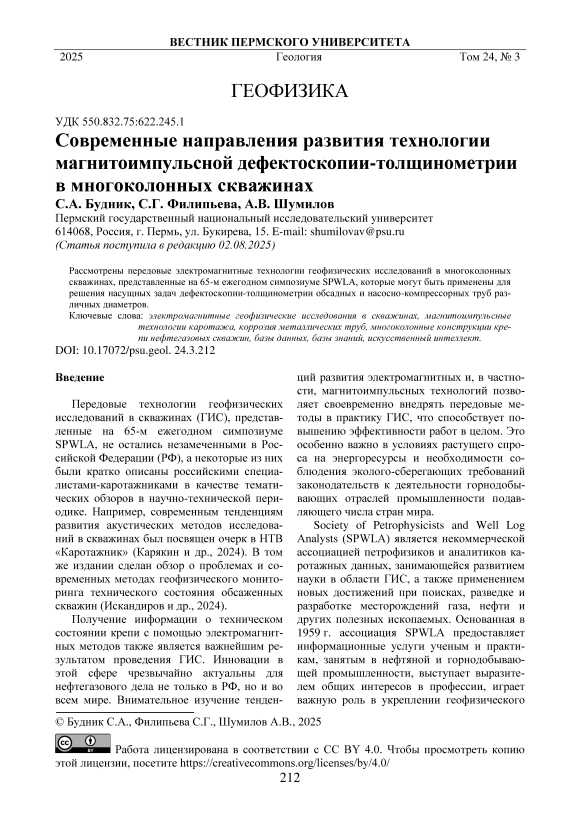 Современные направления развития технологии магнитоимпульсной дефектоскопии-толщинометрии в многоколонных скважинах