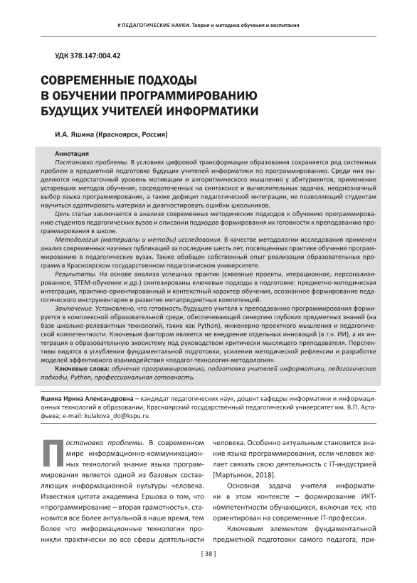Обучение программированию, подготовка учителей информатики, педагогические подходы, Python, профессиональная готовность