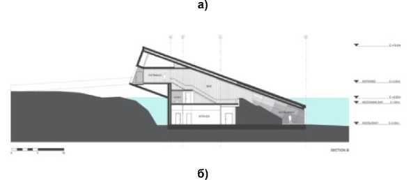 Рис. 3. Подводный ресторан Under, Норвегия: а – общий вид; б – разрез