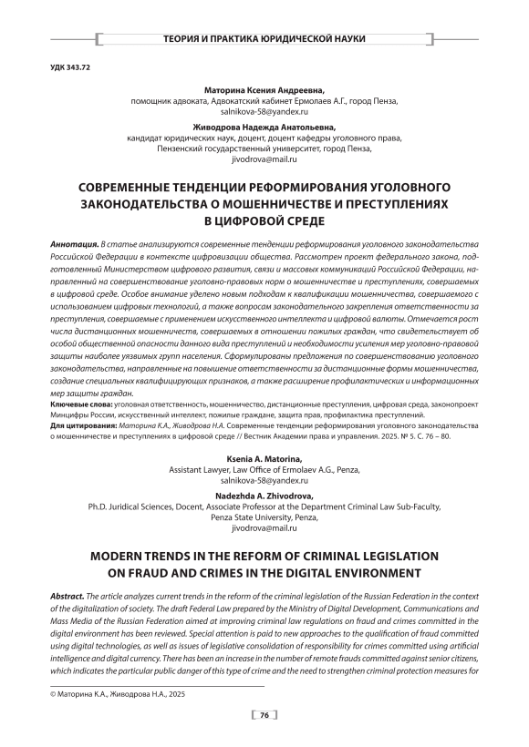 Современные тенденции реформирования уголовного законодательства о мошенничестве и преступлениях в цифровой среде