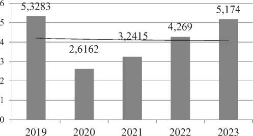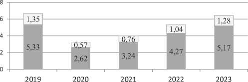 Fig. 6. The cost of travels abroad from Russia in the period 2019-2023 (billion dollars)