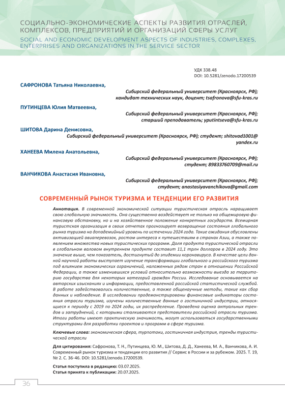 IDR: 140313746 | УДК: 338.48 | DOI: 10.5281/zenodo.17200539